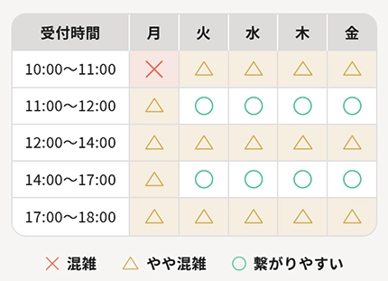 ただし受付終了間際などの時間帯や、問い合わせが集中しやすいタイミングでは一時的につながりにくくなることがあります。