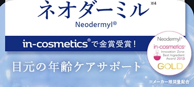 ネオダーミルはフランスのin-cosmetics で金賞を受賞した成分としても知られ、注目されています。