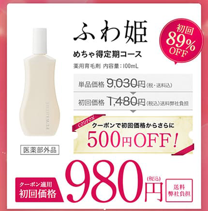 ふわ姫 初回が1480円からさらに500円オフとなるクーポンは