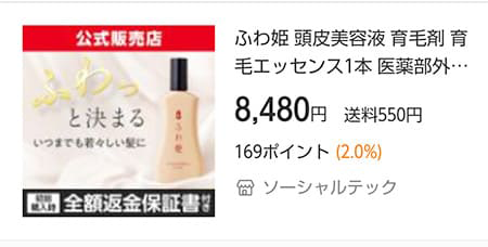 Yahoo!ショッピングでふわ姫を購入する場合は、公式サイトのキャンペーンと価格や特典などをよく比較したうえで正規代理店から購入することをおすすめします。