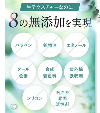 ピリモクリアモイスチャーセットはパラベンやエタノールといったお肌に負担になりやすい8つの成分を無添加。