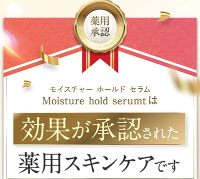 美容液モイスチャーホールドセラムは薬用承認成分のナイアシンアミドとグリチルリチン酸2K配合。